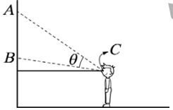 4. 小明到畫廊賞畫(如圖),牆壁上懸掛一幅山水畫AB,A點,B點分別離地4公尺,2公尺 高,若小明的眼睛C離地1.5公尺高,則C離牆壁多遠時,他對該幅「山水畫」的視角θ 最大? (A)公尺 (B)公尺 (C)公尺 (D)公尺。