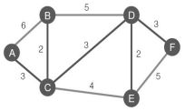 15. 因為疫情關係學校停課 10 天,班上剛好有 6 位同學 (A-F)家裡沒網路,劉老師為了讓這 6 位同學可以上 網,需架設網路,每戶之間拉網路線所需花費的成本如 圖所示,請問花費最低所需成本及最高成本分別為? (A)15、24 (B)13、23 (C)13、26 (D)12、26。