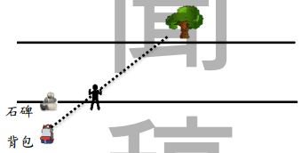 28. 筱潔想使用「三角測量法」測量不能跨越的河寬,已知他往右走到樹的正對岸處的 步伐是 20 步,往左走到石碑的步伐是 5 步,從石碑走到背包的步伐是 3 步,根據筱 潔之前永備尺的測量,他知道他的便步長是 55 公分,請問河寬約為幾公分? (A) 330 公分 (B) 495 公分 (C) 660 公分 (D) 825 公分