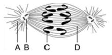 (A)根據A和B可以判斷出這是一個動物細胞 (B)原核生物中也可以看到這種現象 (C)根據C的構造,此時細胞必處於減數分裂 (D)在此階段的細胞看不到核仁、核 膜 (E)ABCD皆具有蛋白質