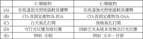 7. 下列有關「C3 類植物」和「C4 類植物」之比較,何者正確?