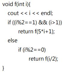 22. 在 C++中,若以 f(3) 呼叫下列 f() 函式,總共會印出幾行數字? (A) 5 行 (B) 6 行 (C) 7 行 (D) 10 行