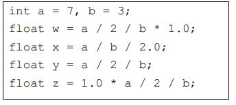 28. 對於右側程式碼,請問程式執行後 w, x, y, z 哪幾個變數的值會相同? (A) w, x, y 三者值相同 (B) w, z 兩者值相同 (C) w, x, y, z 所有值相同 (D) w, x, z 三者值相同