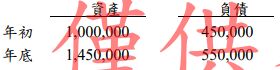 39. 台中公司在2021年初及年底的資產及負債餘額分別為:若業主在年中並未增加投資也未提取,請問該公司該年度的淨利(或淨損)為多少元? (A)300,000 (B)350,000 (C)450,000 (D)500,000