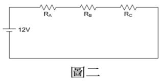 9. 試求圖二之等效電阻R,其中RA為2歐姆、RB為4歐姆、RC為4歐姆(A)R=10Ω (B)R=11Ω (C)R=12Ω (D)R=13Ω