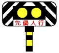 (A)特別点滅「黄」信号(B)進行車制御信号(C)横断歩道信号