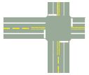 (A)交差点(B)狭い道(C)左側から合流車線あり