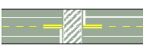(A) 障害物ありの区画線 (B)踏み切りありの区画線(C) 幅員 減少線