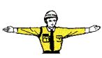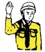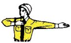 左腕を下に垂らし、手のひらを後ろに向けるのは(A)減速し て停車する(B)後方車に追い越しを促す(C)バックする