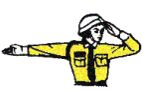 (A)左の車両に左折の指示をだす(B)右の車両に速やかに進 行するよう指示する(C)左から来る車両を止める