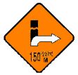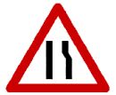 (A)右側車線縮小(B)狭い道(C)合流車線あり