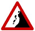 (A)路面危険(B)左側落石注意(C)右側落石注意