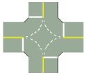 図中の黄色の二実線は:(A)停駐車線(B)進行方向制限線(C) 幅員減少線