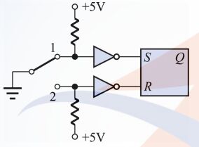 65. 如圖所示,此電路一般可用來做(A)振盪器用 (B)電流放大電路用 (C)電壓放 大電路用 (D)消除開關的彈跳現象用 。