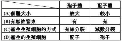 10. 有關台灣水青岡的孢子體與配子體之比較,下列選項何者正確?(A) (B) (C) (D)