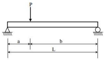 35.下圖為簡支梁受集中載重P作用圖,其中P=30噸、a=5m、b=10m,則鉸支承端之向上反力為_______ 噸。