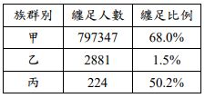 10.日治初期,官方曾經統計臺灣三個族群之女性纏足人數和比例,如下表:根據此表的數據,下列分析何者最為合理? (A)乙為原住民,因其人口不多,故纏足人數比較少 (B)丙為日本人,因來臺時間短,故纏足人數也較少 (C)乙為粵人,因女性參與勞動者多,纏足比例較低 (D)丙為閩人,其男女地位不平等,故纏足者比例高