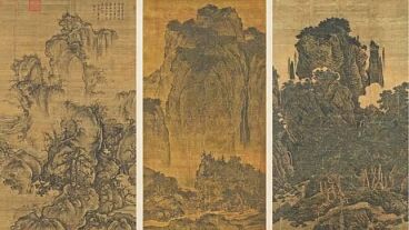 29.〈早春圖〉、〈谿山行旅〉、〈萬壑松風〉(見圖左至 右)一向有故宮「鎮院三寶」的美譽,也在 2012 年由文化部核定為國寶級古物。這三件巨幅立軸,分 別代表北宋「巨碑式」山水畫的典範。由於考量這三 件國寶的年代久遠、絹本質材脆弱,為了減少被光線照射的時間,每次展覽至少必須間隔三年以上,而且展期不能超過 42 天。2021 年 10 月 6 日~11 月 16 日,故宮特別在北院規劃了「鎮院國寶」重磅特展。 以下有關〈早春圖〉的敘述,何者正確? (A)〈早春圖〉的作者是郭思 (B)作者以盛開的鮮花以及動物等爭春景象揭示早春的到來 (C)作者以一種蒸氣繚繞的景象來表現瑞雪消融,大地復甦,草木發枝,一片欣欣向榮的早春景象 (D)畫面內容以山水樹木為主體,並没有其他人物活動點綴於畫中