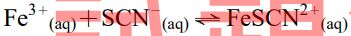 26. 在平衡系內,下列各項敘述哪些正確? (A)加純水,平衡向左移動 (B)加入 NaOH 固體,對平衡無影響 (C)加入 Fe(NO3)3晶體,溶液之血紅色加深 (D)加入 KSCN 晶體,溶液之血紅色加深