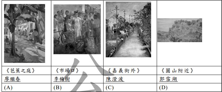 18. 綜觀臺灣美術的脈絡過往有很多藝術家努力用畫筆留住臺灣多元的風土與人文,附圖為描繪臺灣各地風景之作品,請依序由北至南排列出對的順序abcde(A)c-b-a-e-d (B)b-c-a-e-d (C)c-b-e-a-d (D)b-c-e-a-d。