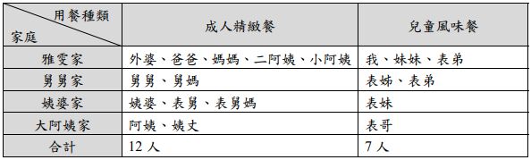 10. 由於疫情趨緩,難得的 5 月母親節假期,雅雯將協助家族預訂節慶當晚的餐廳桌數, 下列為媽媽紀錄的人數表,如附表所示,表中哪些家庭屬於核心家庭?(A)舅舅家、雅雯家 (B)大阿姨家、姨婆家 (C)舅舅家、大阿姨家 (D)姨婆家、雅雯家。