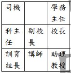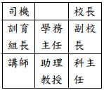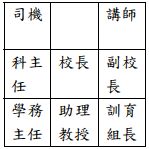 37. 集集專科學校在度假村舉辦畢業生營火晚會,傍晚時分教職員工搭乘小巴士前往現場,請問座位的安排何者最符合禮儀? (A)(B)(C)(D)