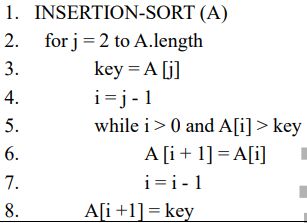 21. 以下為插入排序(insertion sort)的程式碼,A 是一個整數陣列,請問以下那個 A 陣列會讓 line5 被執行最少次? (A)A = [1,2,3,4,5,6,7,8] (B)A = [8,7,6,5,4,3,2,1] (C)A = [7,5,3,1,2,4,6,8] (D)A = [2,3,2,3,2,3,2,3]