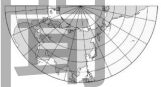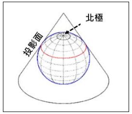 42. 根據下圖的地圖投影方法,下列何者描述最正確? (A)此為麥卡托投影系列的一種正形投影 (B)緯度越高的地方,形狀變形越嚴重 (C)投影面與地球相切的緯度線,其圖形變形最小 (D)適合南北狹長型國家採用