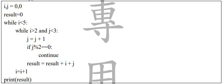 18. 請問執行以下 python 程式碼會印出?(A)0 (B)1 (C)2 (D)6