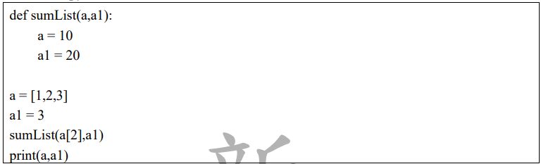 25. 請問執行以下 python 程式碼會印出?(A)[1,2,3] 3 (B)[1,2,3] 20 (C)[1,10,3] 20 (D)10 20