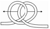 31. 學生正依照繩結圖來做練習,請問這是哪一個繩結的步驟圖? (A)雙套結 (B)三套結 (C)花聯結 (D)椅結