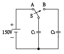 8.如圖所示,假設電容C1為10uF充滿電後,把開關S由A移到B點,則電容C1之電壓降為75V後達到穩定。若電容C2之初始電壓值為零,試求電容C2之值為何?(A)10uF(B)12uF(C)14uF(D)24uF