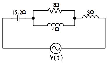 16.如圖所示電路,若電源電壓V(t)=100cos(377t+60°)V,將電源頻率調整為多少時可達諧振?(A)60Hz(B)120Hz(C)240Hz(D)30Hz