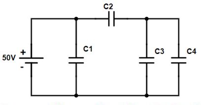 28.如下圖電路,若C1=4μF、C2=5μF、C3=10μF、C4=10μF,求C2所儲存能量為多少?(A)4mJ(B)6mJ(C)9mJ(D)15mJ