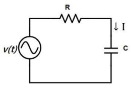34.下圖電路所示,已知流經電容的電流I=4A,R=10Ω,C=500μF,v(t)=80sin ωt V,請求出ω值為多少rad/s?(A)157(B)200(C)314(D)400
