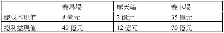 22 為了發展觀光產業,政府提出三項投資方案的總利益現值和總成本現值如下表,依益本比法該優先執行那項方案? (A)賽馬場 (B)摩天輪 (C)賽車場 (D)三項投資方案皆不可行