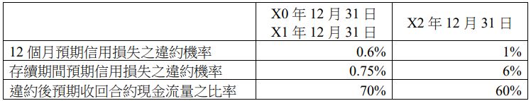 7甲公司於X1年1月1日以平價買入乙公司發行之債券,面額為$100,000、票面利率5%、每年年底付息的債券、債券到期日為X4年12月31日。甲公司將該債券投資分類為「透過其他綜合損益按公允價值衡量之債券投資」;另該債券在X1年與X2年底之公允價值分別為$99,000與$108,000。甲公司於X1年12 月 31 日判定該債券投資自原始認列後信用風險並未顯著增加;而於 X2 年 12 月 31 日判定該債券投資自原始認列後信用風險已經顯著增加。甲公司評估有關衡量預期信用損失之相關資訊如下: