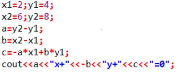 36. 對於下列 C/C++程式片段,何者敘述有誤?(A)若(x1,x2),(y1,y2)及(5,4)視為三個二維平面座標,則會構成一個直角三角形(B)程式輸出為 4x+-4y+8=0(C)若(x1,x2)及(y1,y2)視為兩個二維平面座標,則直線方程式的斜率為-4/3(D)若(x1,x2)及(y1,y2)視為兩個二維平面座標,程式功能為計算直線方程式。