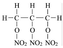 1. 硝化甘油是一種爆炸能力極強的炸藥,而其在醫學上可用作血管擴張劑,其結構式如下圖。當其爆炸時會分解出氧氣、氮氣、二氧化碳及水蒸氣,請問2.27克硝化甘油在1大氣壓、227 ℃完全分解後可產生多少升的氣體?(註:氣體在1大氣壓、227 ℃時的莫耳體積為41升)