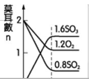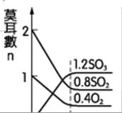 14. 在一定溫度下,在一密閉容器中注入SO2與O2氣體,反應生成SO3。如果達到平衡時,容器內的壓力變為原來的4/5,則各物質的莫耳數(n)與反應時間(t)的關係圖,下列何者正確?