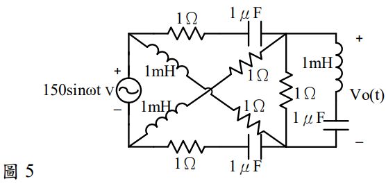 9.圖 5 電路中,當 ω→∞與 ω→0 時,vo(t)之最大振幅分別約為