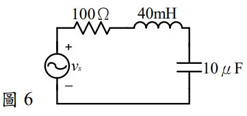 11.圖 6 所示電路中, V,當電路共振時,電容器之電壓大小約為
