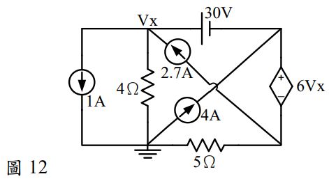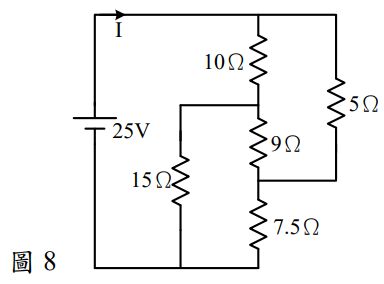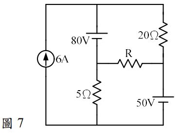 12.圖 7 電路中,R 獲得最大功率時,流經 R 之電流為