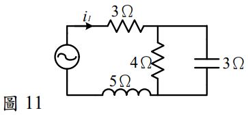 16.圖 11 所示電路中,若i1=5 ∠0°A,則此電路之平均功率為