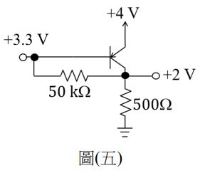 8. 如圖(五)所示,假設電晶體工作在主動放大區,求此電路之IC/IB比值約為何?
