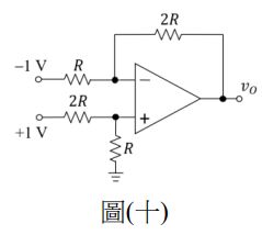 16. 如圖(十)所示之理想運算放大器(OPA)電路,求輸出電壓vO為何?