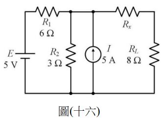 26. 如圖(十六)所示之電路,當電阻 Rx 為多少歐姆時,RL 可以獲得最大功率?
