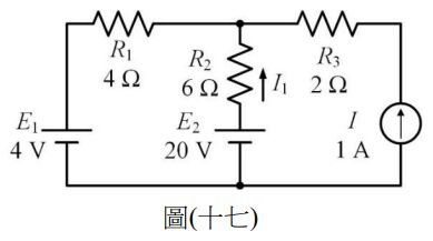 27. 如圖(十七)所示之電路,求 I1 的電流大小為多少安培?