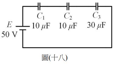 29. 如圖(十八)所示之電路,求 C2 兩端電壓為多少伏特(V)?