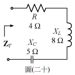 33. 如圖(二十)電路所示,求總阻抗 ZT 為多少歐姆(Ω)?
